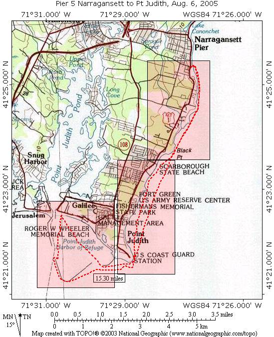 Pier 5, Narragansett to Salty Brine Beach, Galilee