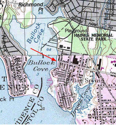 Bay Spring Avenue, Barrington: (CRMC not designated) Located at the end of Bay Spring Avenue. This town public right-of-way overlooks Bullock Cove and has a steep boat ramp in fair condition that is used by shellfishermen. There is no parking at the launch but parking is available for 3 cars to the east on Bay Spring just up from the site. Note that the corner has a fire plug and parking is restricted within 15 of the plug. There are absolutely no sanitarty facilities at the site.