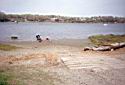 Off season launching is also available from the far east end of the swimming beach. There is a sandy walk-down area to launch from. The rest rooms are closed, but woods closeby provide discrete privacy.