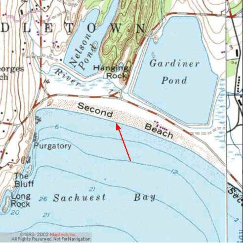 Second Beach, Newport: (Town Area) Directions from the West Bay: take Rt. 138 over the Jamestown and Newport Bridges. Follow signs to 138A to the ocean. Take left on Purgatory Rd passing St.George's School to 2nd Beach. From The East Bay: Rt. 24 over the Sakonnet Bridge to 138 and then to 138 A and follow the above directions. From Bristol take the Mt. Hope Bridge then follow the directions to 138, then to 138A, same as above. If coming from the Boston area take 24 South over the Sakonnet Bridge and from the Cape are, take 195 West to 24 south over the Sakonnet Bridge and follow he above directions.