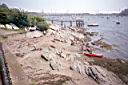 The last launch is in the Storer Park at the land end of the Goat Island causeway. There is a nice beach for launching at all but extreme high tide. There is no parking near the beach. The only parking near is on Washington St. along the Park.