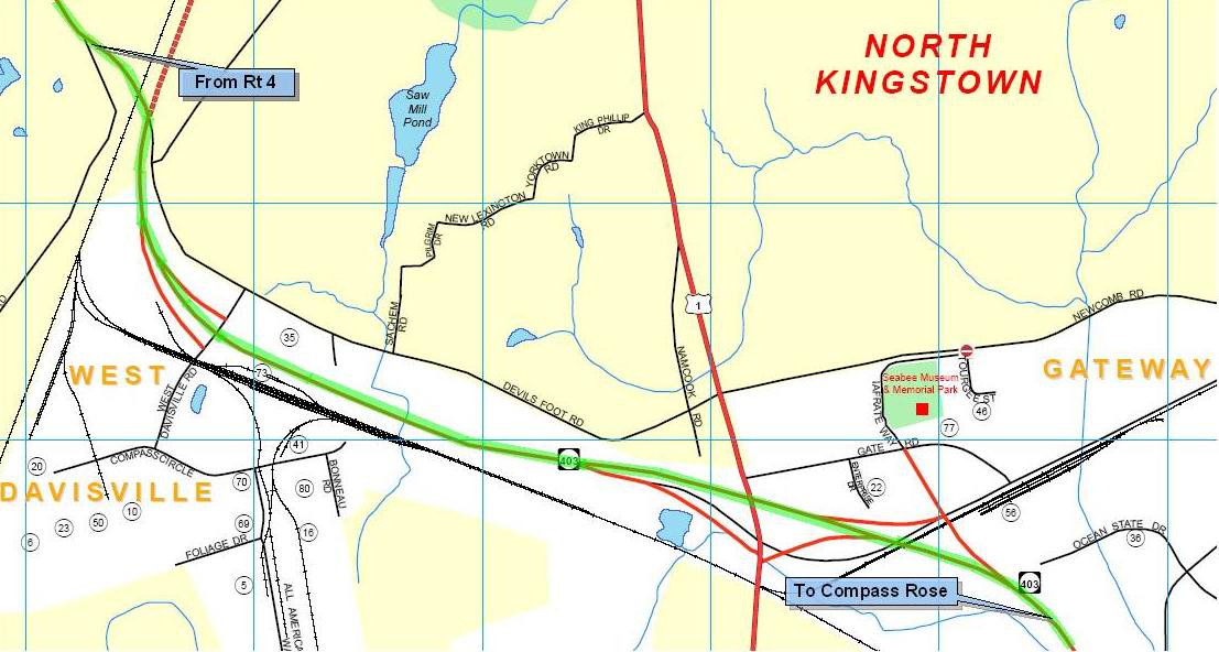 Exit 7 at Rt 402/403 (to Quonset Pt) and continue on Rt 403. After