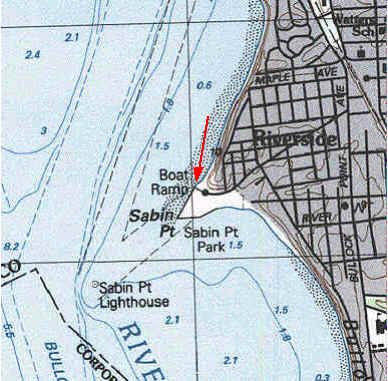 Sabin Point Park, East Providence: (Town owned) Directions from north take Rt 114 south, continue on to Rt 103 where Rt 114 turns to the left. Continue south, where Rt 103 swings left go straight onto Bullocks Point Ave, turn right on Shore Road and continue to the end. This grassy waterfront park has a large sandy beach facing south. Facilities include a boat ramp, and on-site parking for about 30 cars, but no sanitary facilities off season. Portable toilets may be available during the summer season. The south facing beach is sandy for launching and next to the boat ramp is a small shell covered beach also suitable for launching.