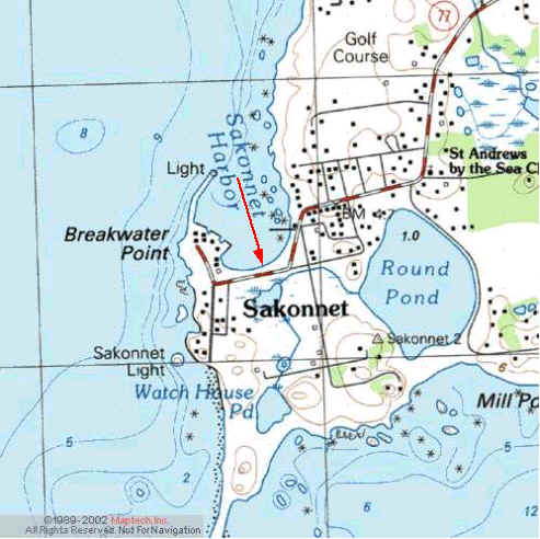 Sakonnet Harbor Fishing Access, Little Compton: Directions from Rt 195, exit on Rt 24 in Fall River, south. At Fish Rd (Exit 6) go south to tee and turn right. Go to end and turn left (south) on Rt 77. Continue to end at Sakonnet Point Road at the southern end of Route 77. There is a single-width concrete boat ramp across a beach into Sakonnet Harbor, a sheltered basin with access to the Sakonnet River and the Atlantic. There is a parking area for trailers across the road. Parking next to the beach can squeeze in 6 or more kayaking cars. Parking is limited to 48 hours. There are no sanitary facilities in the area but tall reed grass across the road provides limited discrete privacy.