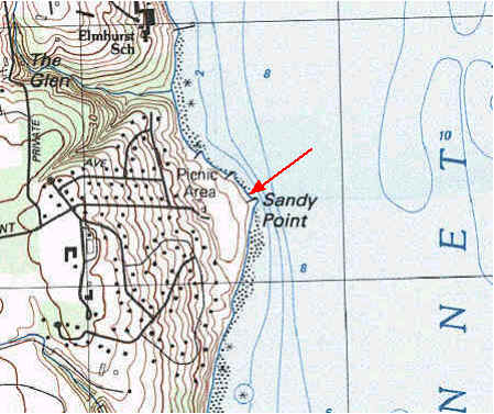 Sandy Point Beach, Portsmouth: (Town Beach) Directions from north or south on Route 138; take Sandy Point Avenue east to the end. The beach is below a thickly settled residential area. It forms a wide and sandy point, about one-half mile long, on the Sakonnet River. The beach has a dirt parking lot and a small bath house with restrooms. Off-season there are no sanitary facilities. There is a parking fee for non-town residents during the Summer season.