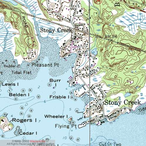 Thimble Islands Connecticut: Launch from Stony Creek. Directions: From Providence, take Rt 95 south to Ct Exit 56. Turn left onto Leete's Island Rd, and follow straight to intersection with Rt 146. Go straight across, and under railroad bridge into Stony Creek. Boat ramp is next to park across the street from the post office. From New Haven, take Rt 95 to Exit 56, turn right onto Leete's Island Rd, and then as above. Parking is plentiful, but scattered all over the village.
